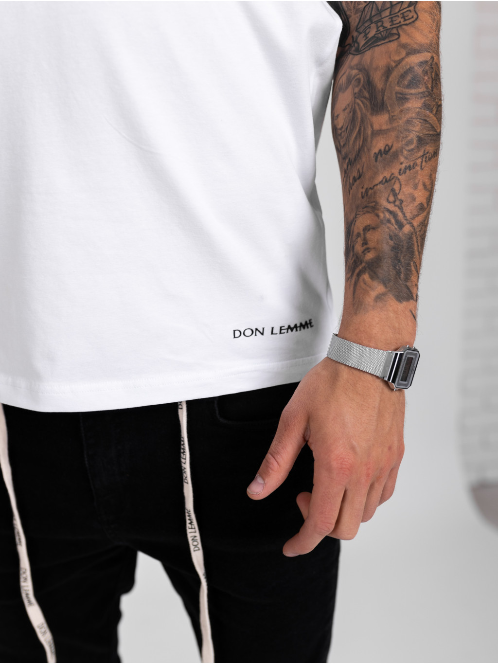 Fehér póló nyomtatással.